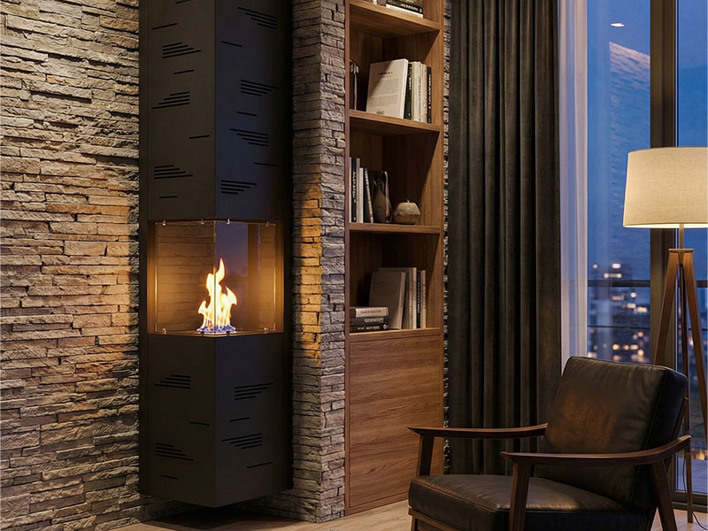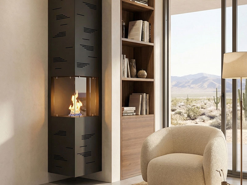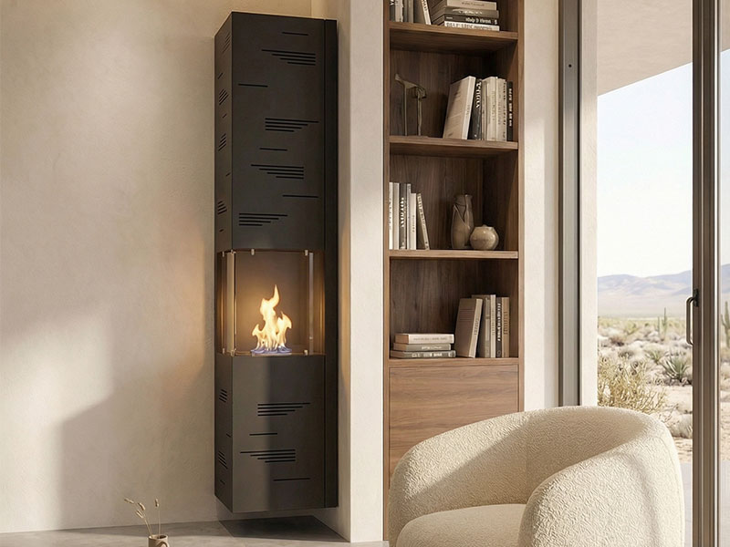 Tower es una biochimenea de pared di facile installazione che si fissa al muro o al cartongesso tramite tasselli.